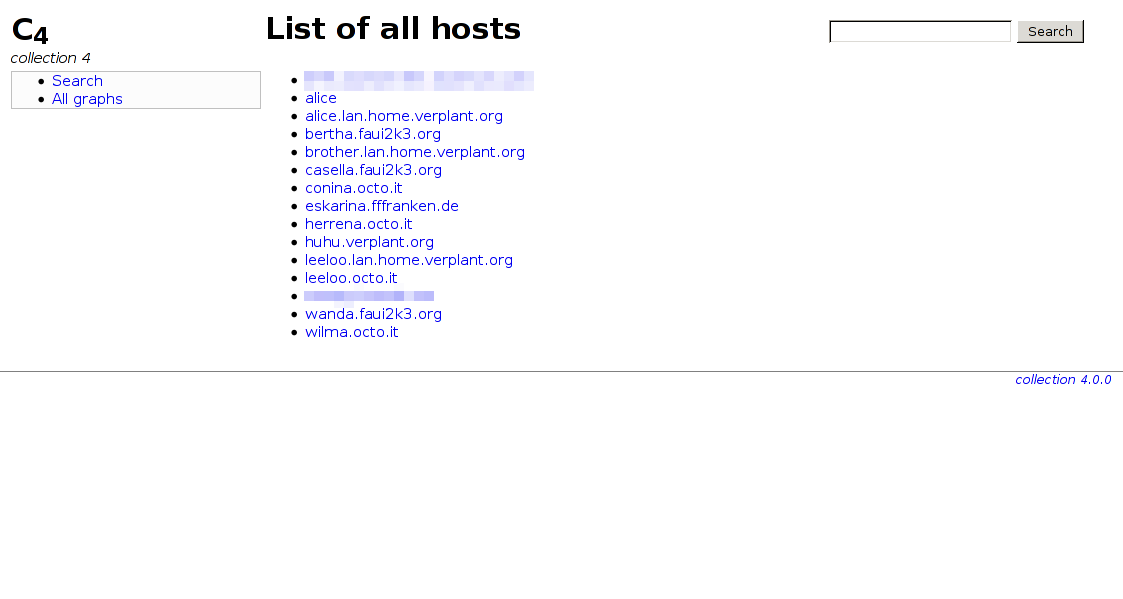 Collection 4 (or C4 for short) is a web-based front-end for collectd. It is the successor of Collection 3, a Perl-based interface with the same purpose. The two don't share any code, however – C4 has been written from scratch.